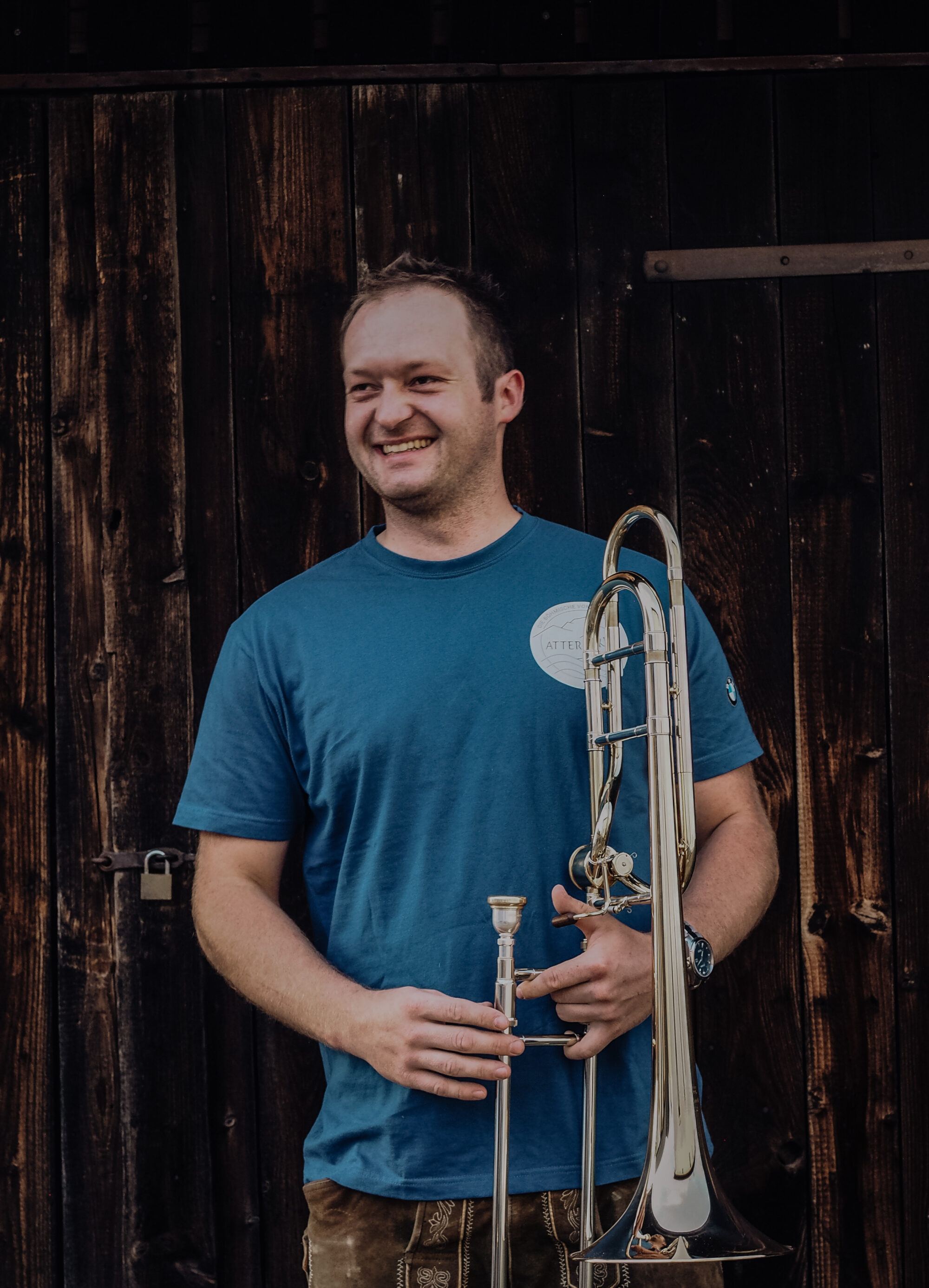 Der Mr. Zuverlässig der Atteranka ist wohl zugleich die ärmste Sau der Gruppe. Während sich so mancher vor dem Auftritt noch den Schlaf aus den Augen reibt, wuselt unser Max schon auf der Bühne hin und her und baut sein Schlagzeugset auf. Und wenn sich nach dem Auftritt alle in bierseliger Stimmung in den Armen liegen, verstaut er alles wieder fein säuberlich im Bandbus. Abgesehen von seinem organisatorischen Talent überzeugt er aber natürlich auch am Schlagzeug auf ganzer Linie.